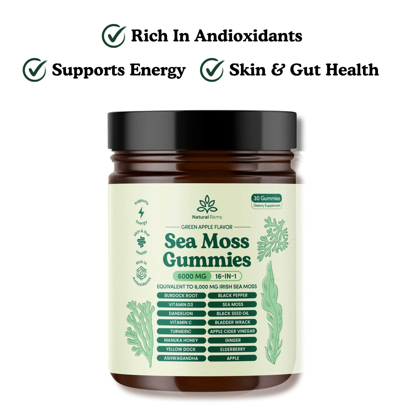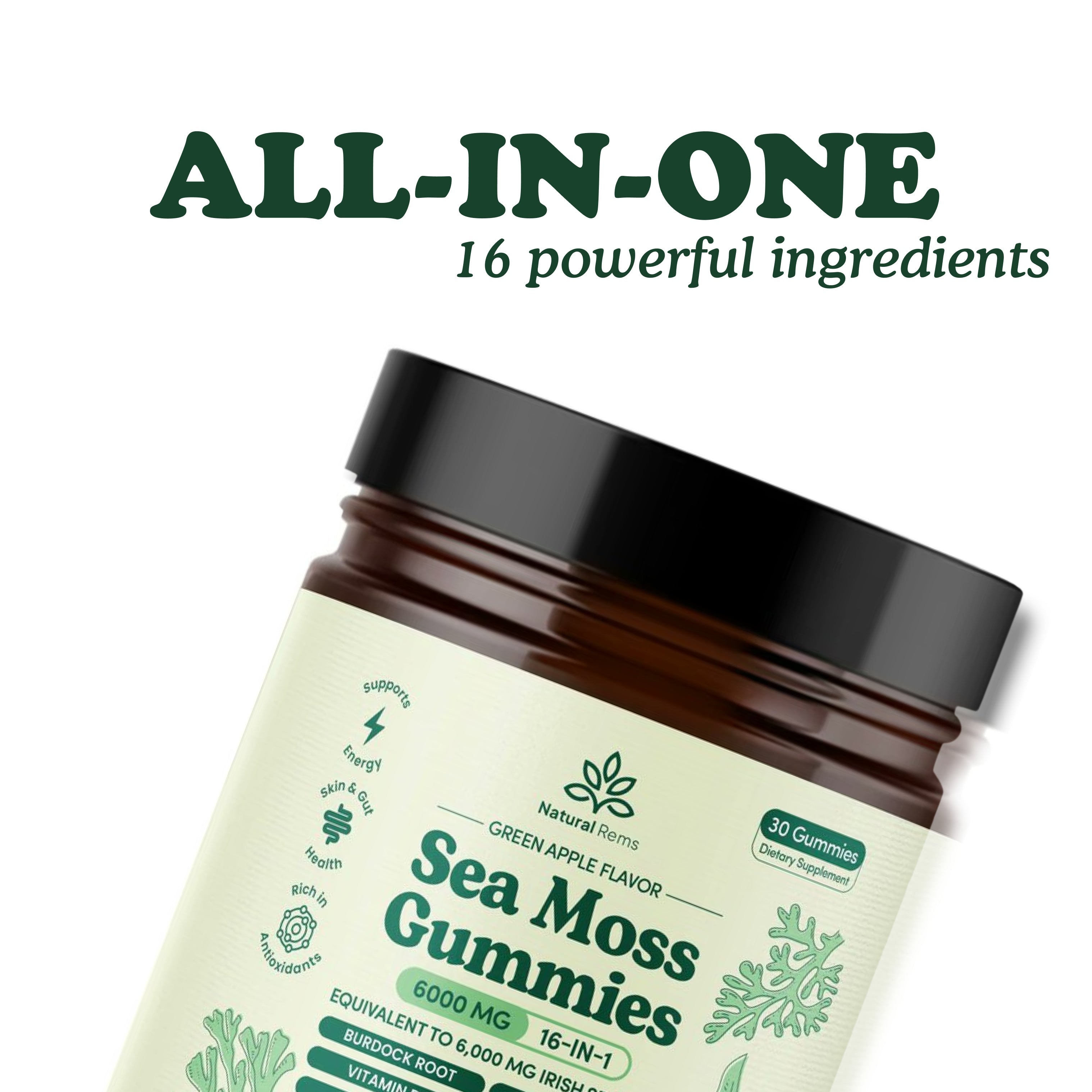 Most sea moss products only deliver one ingredient. Natural Rems combines raw sea moss with 15 additional proven ingredients,like black seed oil, ashwagandha, zinc, and vitamin D3, into a 16-in-1 formula specifically designed for men’s energy, testosterone, and total vitality.